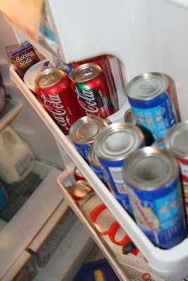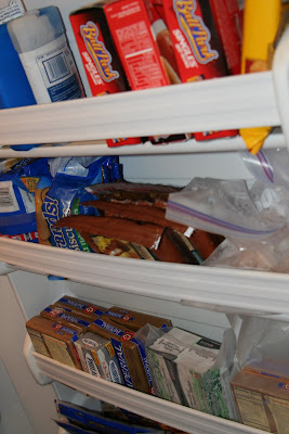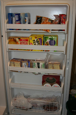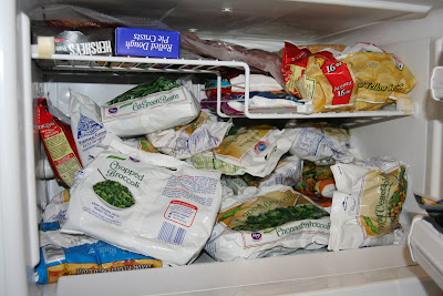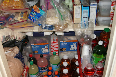 The half gallon and gallon milk jugs are frozen water left in there after Hurricane Rita. The same with the 2.5 gallon Ozarka water thing. I figured since I didn’t have anything else in there to really speak of, I should just leave them. The fuller the freezer, the more efficiently it works, right?
