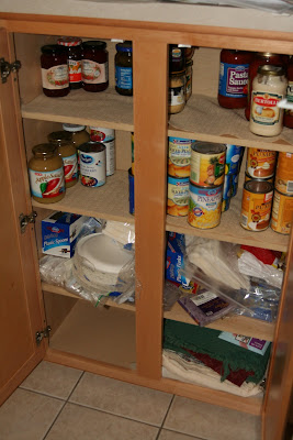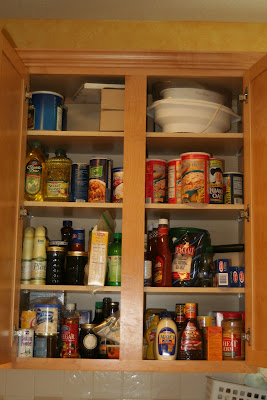 This cabinet (upper) used to be a mix match cupboard of various things before I started playing The Grocery Game. You can see that even now, the food is starting to take over!