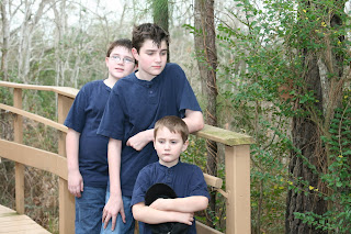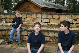 I told the boys to get on matching clothes. I left the finer details to them. I was taking a huge risk here. I simply told them that I wanted them to match and they needed to be in jeans and tennis shoes. The rest was up to them. I did specify that they needed to be clean clothes and pointed to Kyle and said that he needed jeans that did not have holes. I also told them that I wanted them to be ready to go to the park to get these pictures by the time I got back from running a couple of errands. I added that I would probably be gone about an hour.