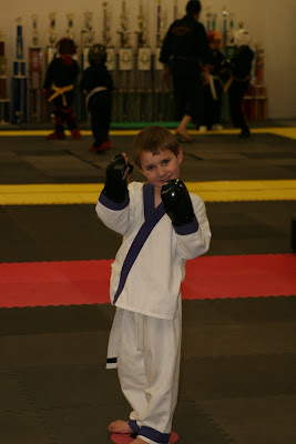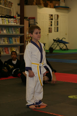Lance took his first karate test on Wednesday night. For me, this will be my last “first” karate test. The worst part, I missed most of it. *frown* I was busy running the older 2 boys to and from piano lessons due to Ben being out of town on a business trip.