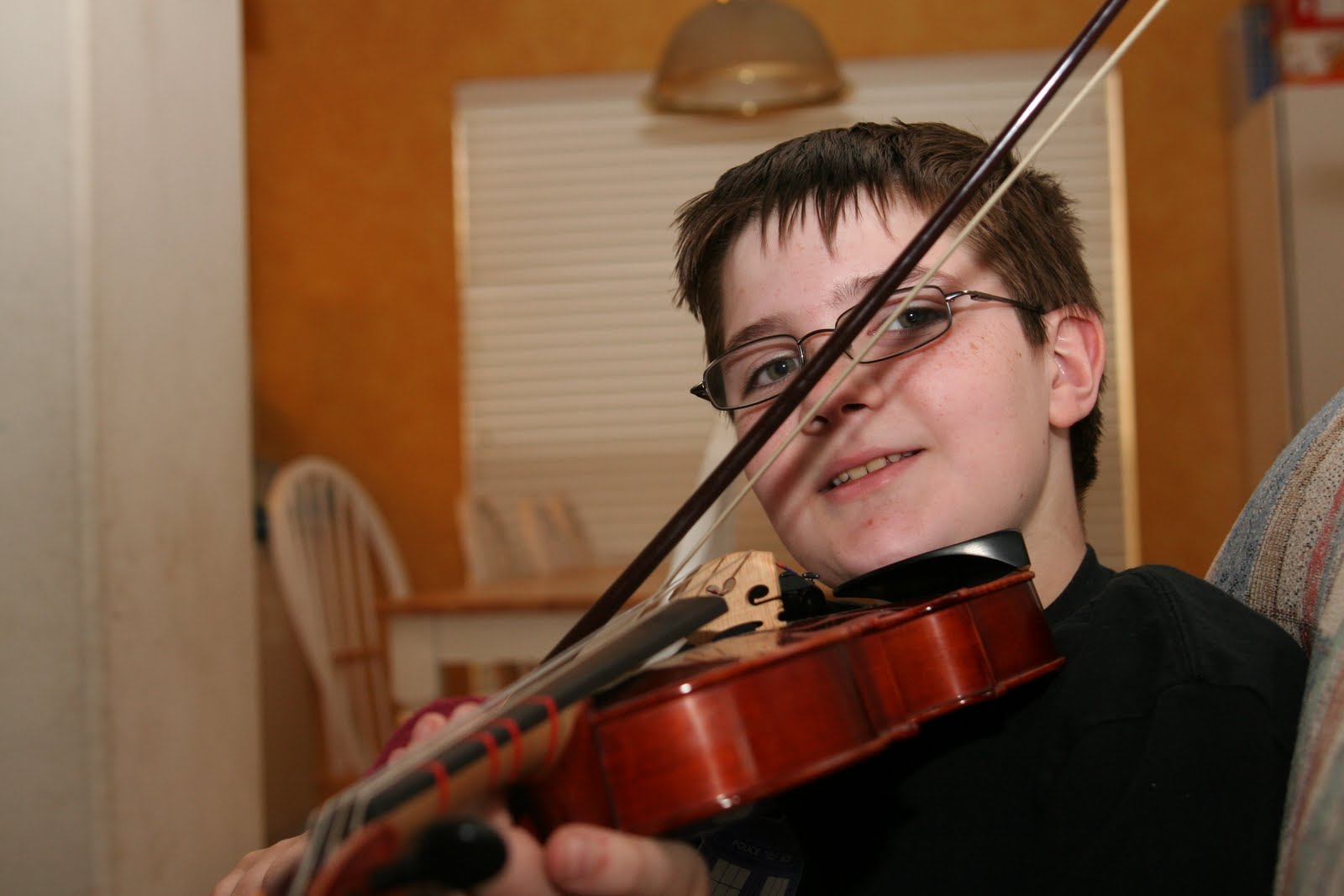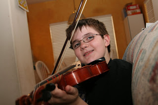 A totally posed shot of Kyle with Bob the Viola.