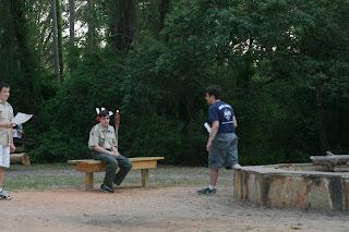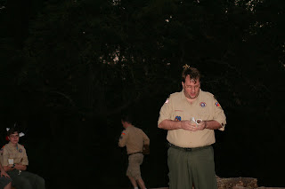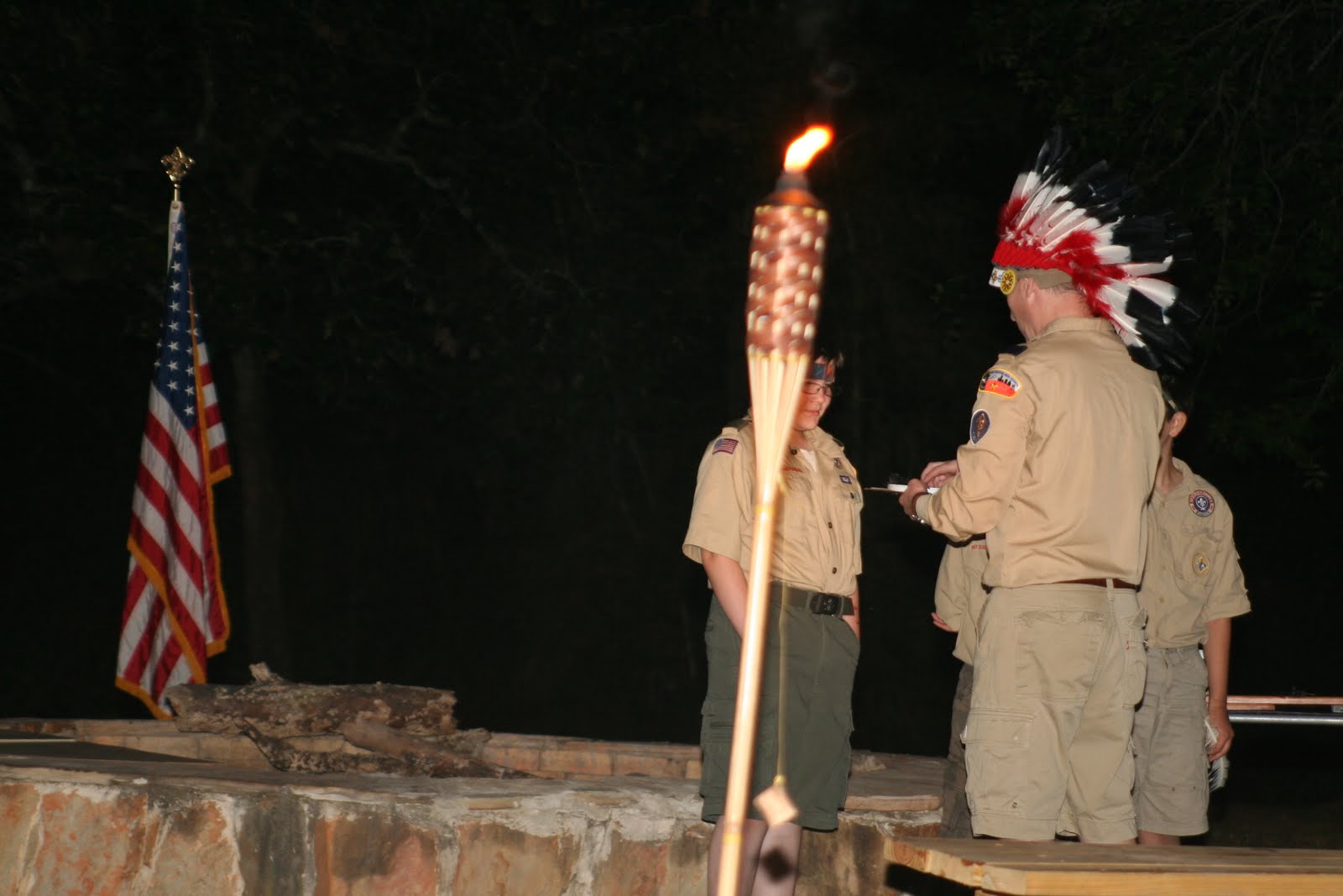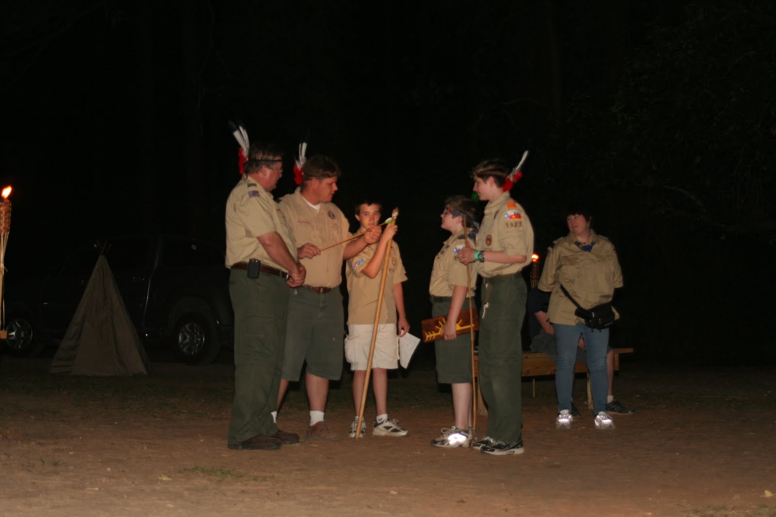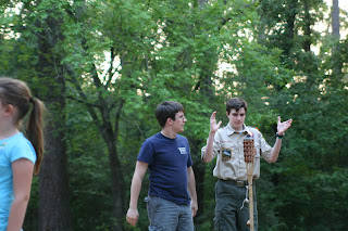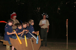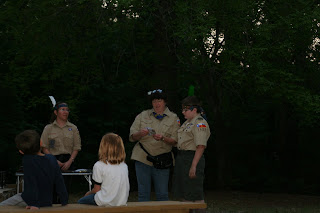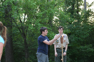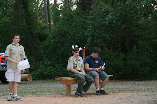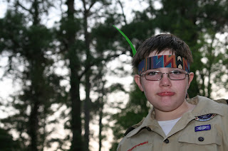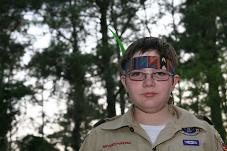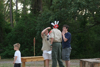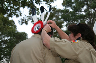 The older Boy Scouts (Tyler, Andrew, and Ben) having a Pow Wow and getting ready for the ceremony.