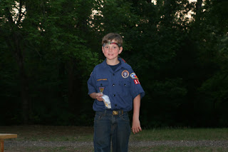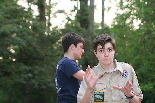 Justin doing a dance or something. He has such a sweet spirit and so much energy. One of our Webelos who recently turned 11 and was crossing over to Boy Scouts tonight.