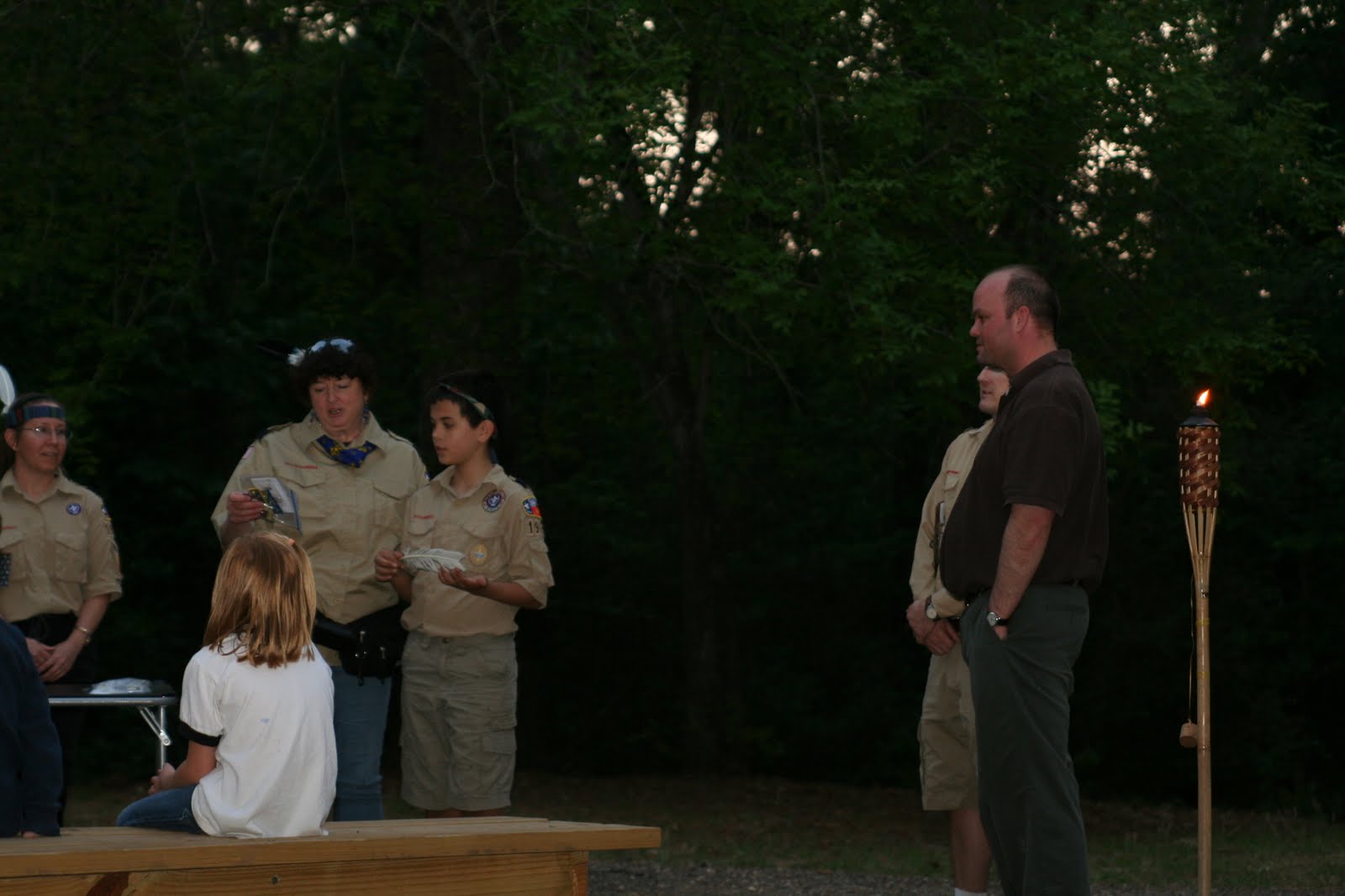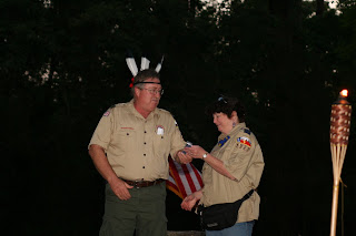 Pack Meetings and the awards are not all for the children. Jeff Crook awarding Valerie Murphy with her award. Way to go, Valerie!!!