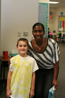 Lance with Ms Figarou, his switch teacher. She is his reading and language arts teacher. I am not sure exactly what the break down is in subjects but she definitely has the reading and language arts and Ms Johnson has math and science. At least this way he will have at least one teacher that he will like and one that will have to work really hard to get him to like her. Ms Figarou seemed very nice and she seemed fine with his lack of confidence in reading. That actually reassured me that he would be okay. I knew that he would be okay, but having that feeling that someone else felt the same way was reassuring too.