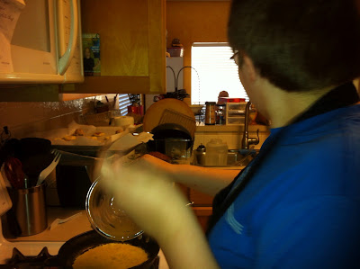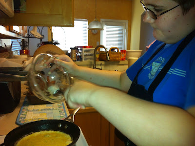 Kyle volunteered to make an omelette for grandma for her birthday. Of course, that means making omelettes for the entire family. Grandma, Uncle Jonathan, Aunt Jennifer, his cousin Katlynn, his two brothers, and mom and dad. Grandpa was at the temple.