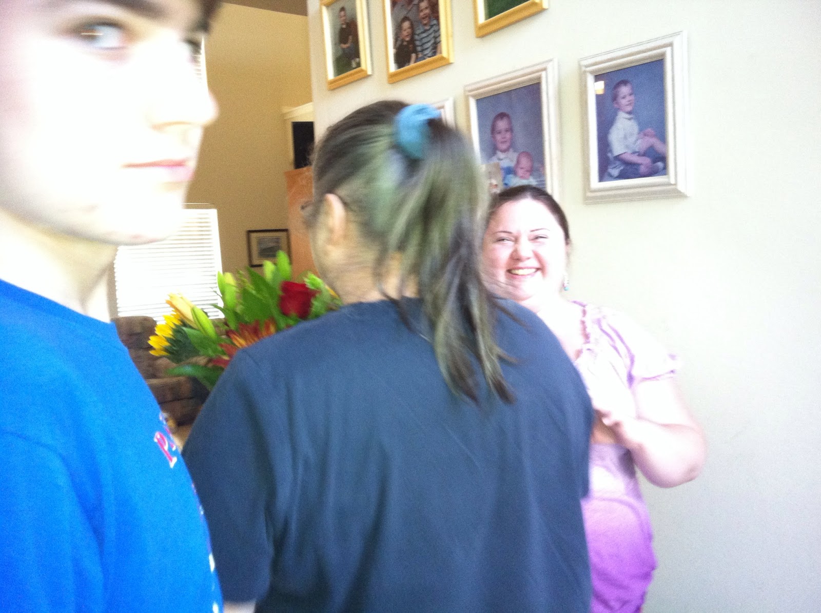 My sister had this awesome idea to give our mother a singing telegram. She sent one to our Aunt Nancy who also shares a birthday with my mother today. So we went and picked out some pretty flowers from Sam’s Club and we had the kids deliver her a Singing Telegram.