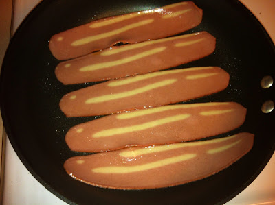 For my omelette I wanted bacon. I fried up some of the less favorable chicken bacon I had in the freezer. The Tyson brand chicken bacon.