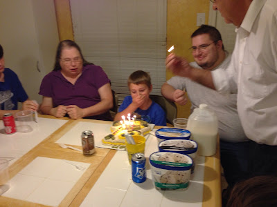 This morning, after I woke up and came out mostly ready for church, Lance smiled at me. I wished him a happy birthday and gave him a hug and kiss. Evidently his father had already been terrorizing him about how old he really was. He really is 8, but there was some discussion between him and his father about whether or not he was 5 or 6…