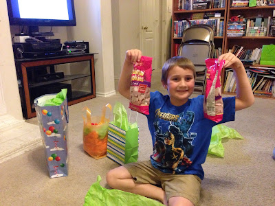 Lance got two packages of iced animal cookies. What can make a boy happier? His very own supply of cookies. He did volunteer to share with his brothers though. Very proud of him.