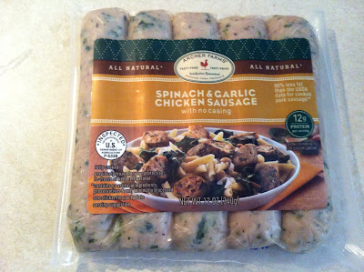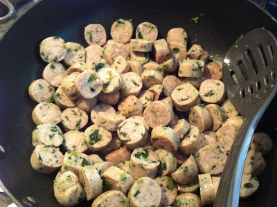 To bump up the protein content and bulk up the contents in the pasta sauce, I like to add a little more. I have found a chicken sausage that I actually like and that my family likes too. I found these wonders at Target of all places. The thing I like most is that they do not have casings. The biggest problem with a lot of the chicken sausage products is that they still have pork casings on them. These have no casings at all. They have a good flavor over all.