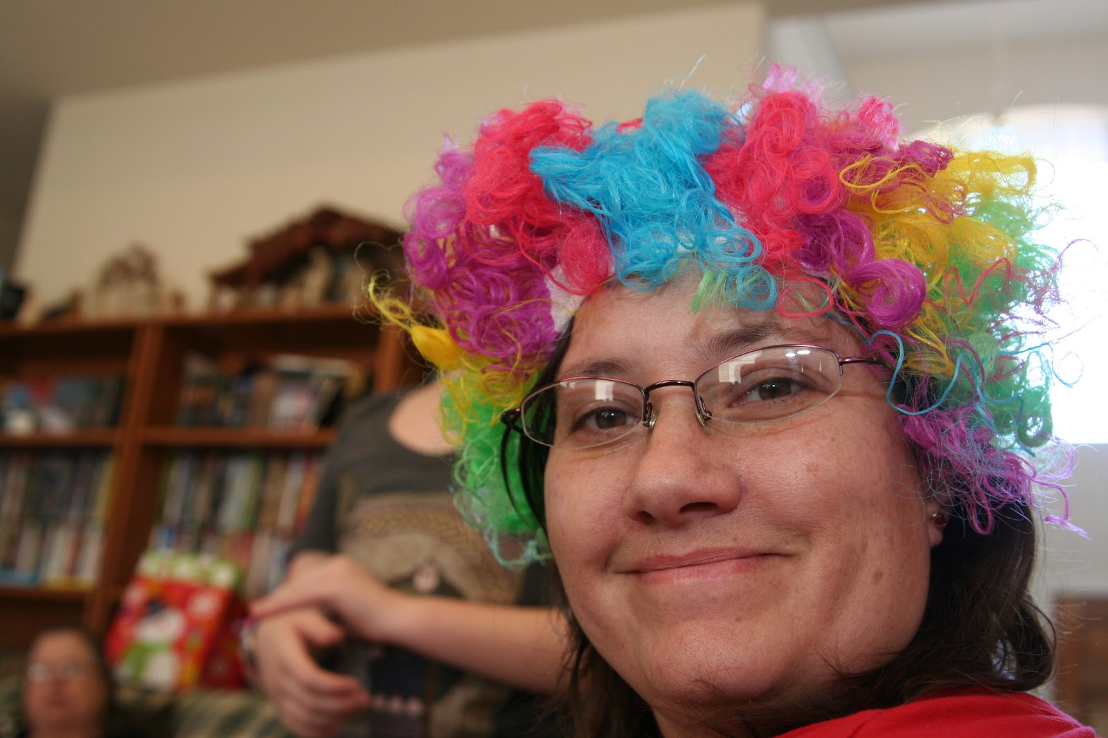 I am not sure how my sister, Jennifer Mowrer, missed out on the camera snapping her picture, but she did. I cannot remember my brother, Jonathan Hellewell, wearing the wig. I do remember Ben wearing the wig, but I could not find a picture of him wearing it. I do not have pictures of the kids wearing the wig. I must have been falling down on the job and slacking at taking pictures. I’ll have to try harder the next time the wig goes around the room.