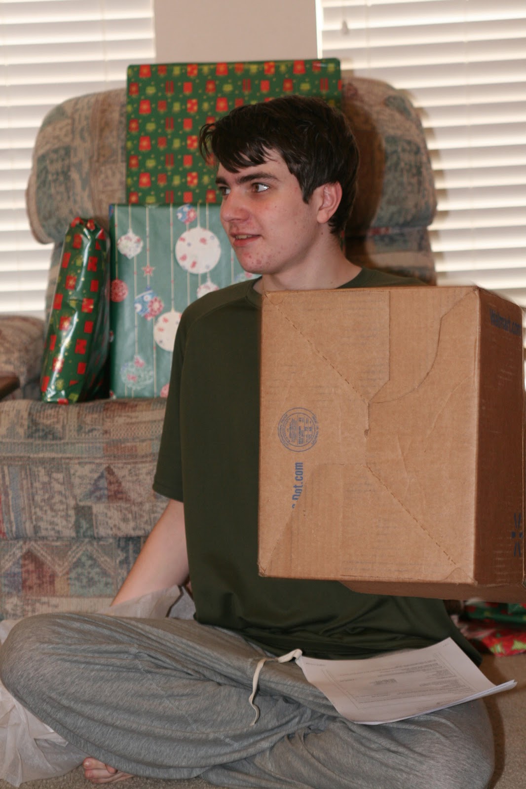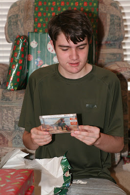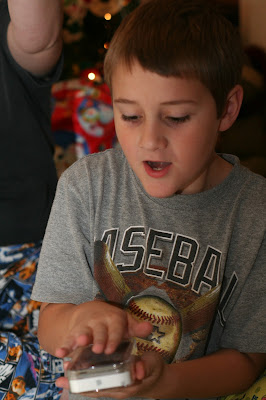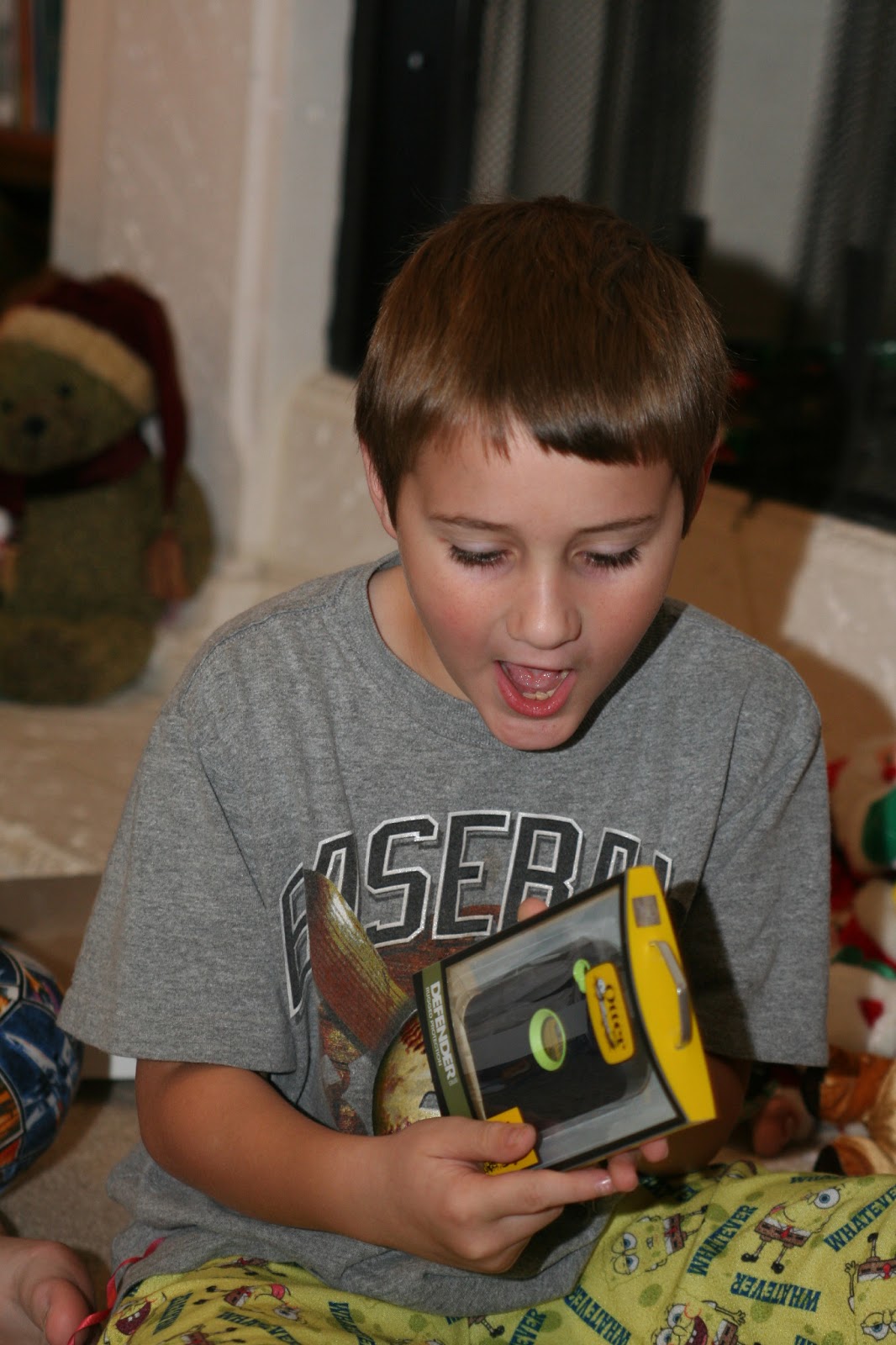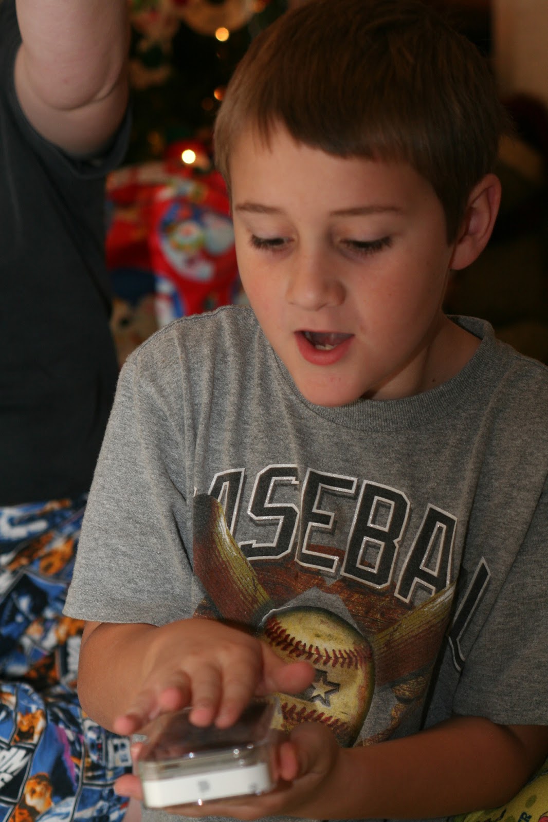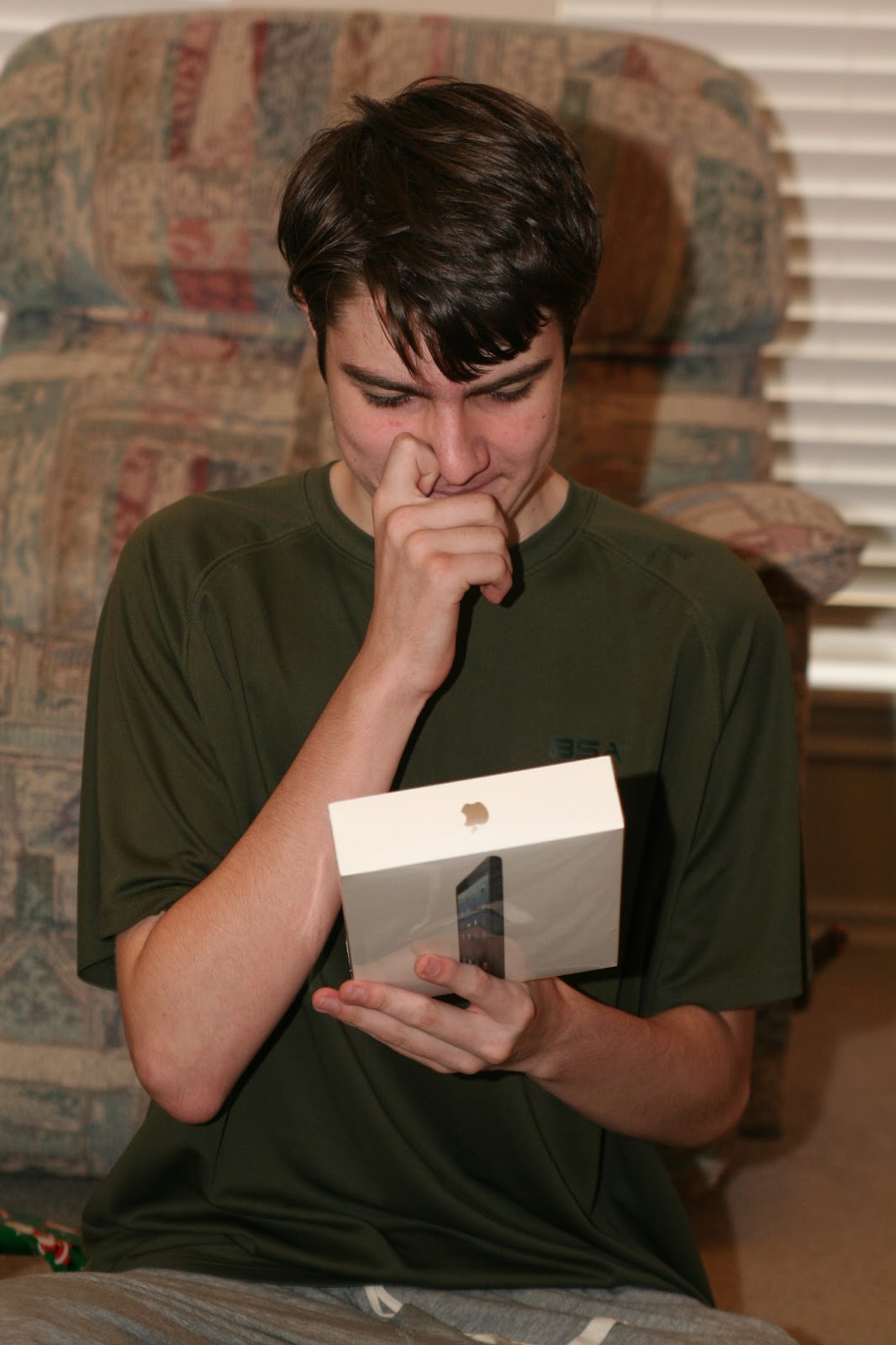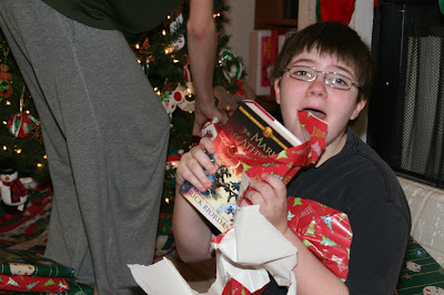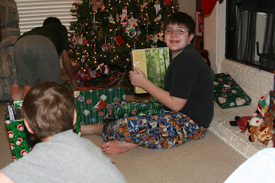 Just so that you do not think that it is all about the electronic gadgets at our house, because it is not, check out the face on Kyle when he opened this gift up. That is a hard core book. Paper pages and all. The face he made was priceless. Yes, it was a book with real paper pages and he was so excited!