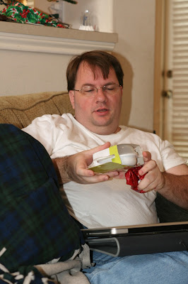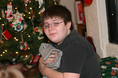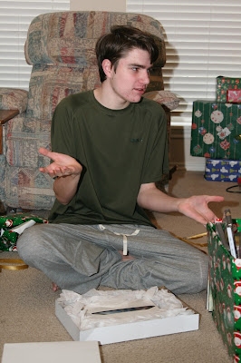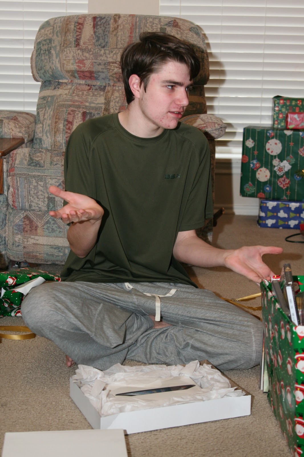 Santa was good to Andrew as well, evidently. I am not sure he knows what to think of his gift. Is he wiping a tear from his face? Maybe he should be. I think this might be the next best thing to a set of car keys and being able to actually drive, right?