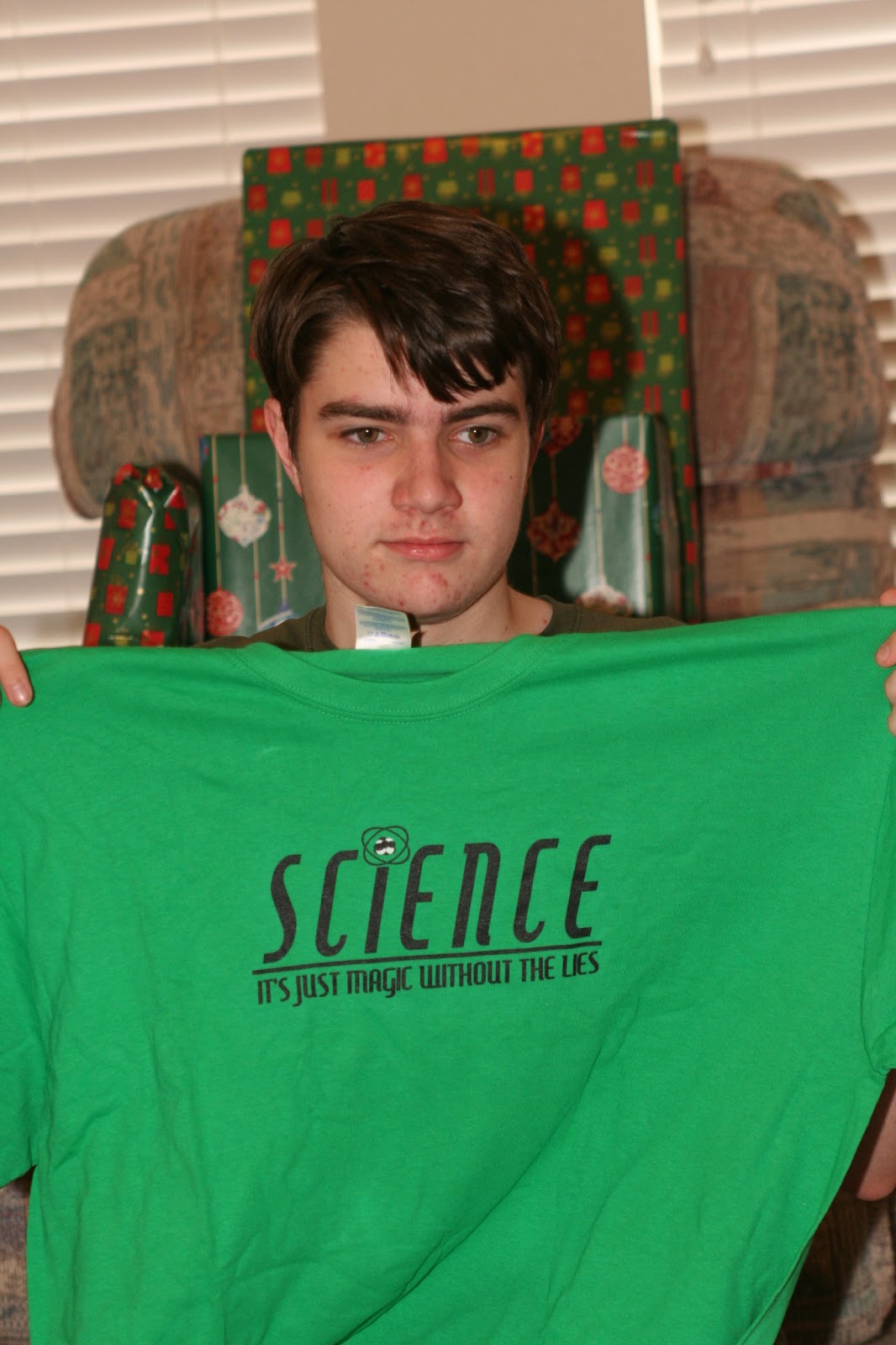 Andrew was not left out in the being well dressed category. He received a t-shirt about science and magic. It is very fitting for him.