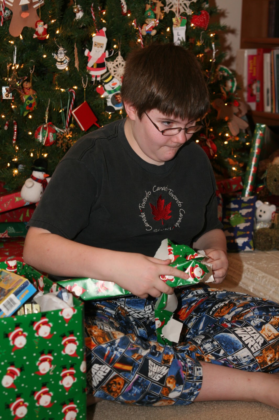 You never know what will be the biggest hits out of the gifts. Sometimes the simplest gifts are the ones that gain the “hug” worthy moment. Kyle actually hugged his new pajama pants. Who would have thought? He needed a replacement pair as his had a hole in them. He had another pair but he wanted ones just specifically like the ones that had the hole in them. This gift was “hug” worthy. He was happy.