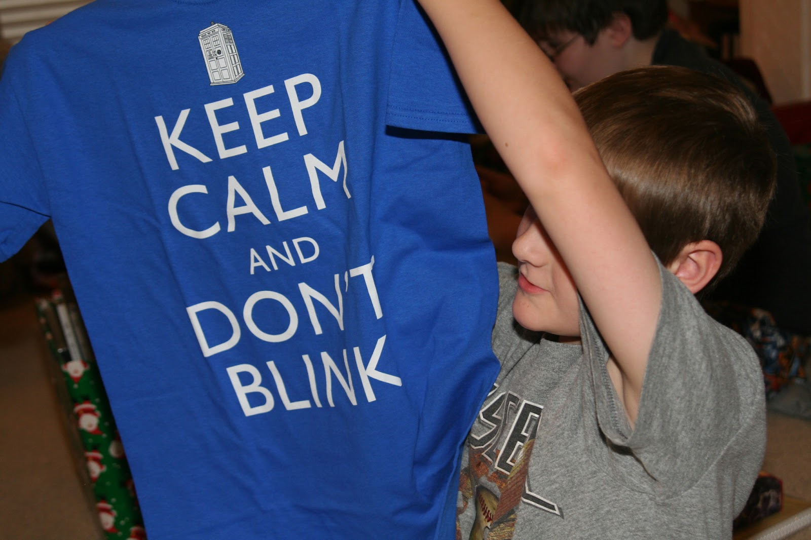 Children should be well dressed. Lance was delighted to receive another Doctor Who t-shirt that referenced the weeping angels.