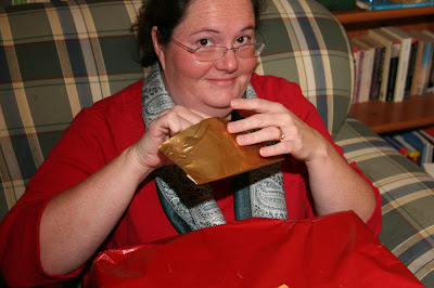 There was no duct tape involved in the wrapping of gifts this year, but that did not mean that the boys and daddy did not have some fun and use a lot of creativity wrapping my gifts. Here is one that is wrapped in…yarn? Do not mind the fact that they caught me scratching my ear. Budding photographer, maybe. Timed perfectly? I think not.