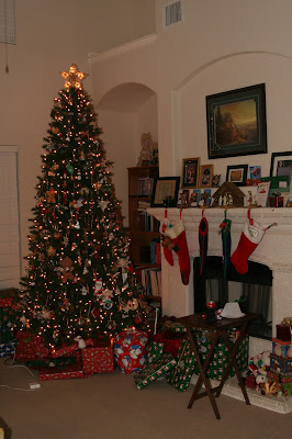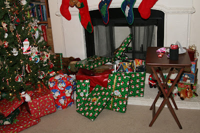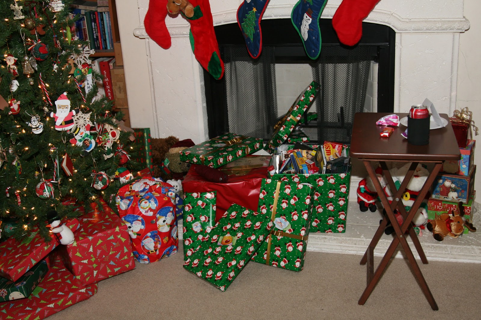 This is what everything looked like before the ravenous children started their prowling. Actually, the children are old enough now that they let us sleep in and they know not to tear into anything before mom is awake and ready with the camera. I think one of us even got a shower this morning. It is great.