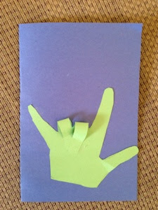 This card in the simple no words way of saying “I love you” really warmed my day with a smile when Lance handed me this this morning. Of course his hand was green, it is his favorite color. Of course!