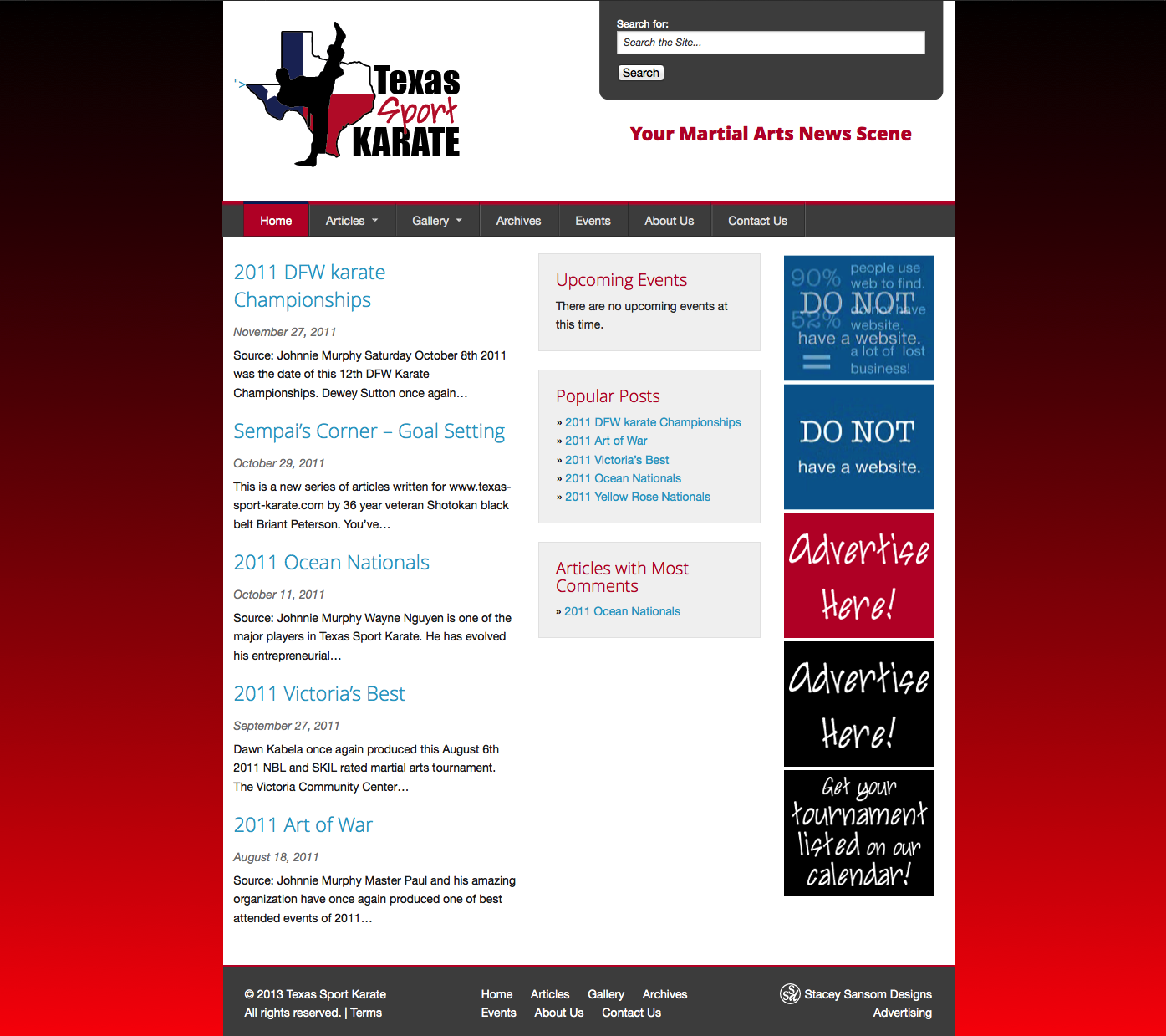 I will be managing the advertising on the website so if anyone is interested in an advertising spot, please make sure you get in at the introductory rates. These are sure to fill up quickly. This is a great place to advertise your martial arts based companies, products, and events. These spots are not limited to these businesses or events, of course, but we have kept the prices low to encourage these types of entities to advertise. This is the target audience obviously.
