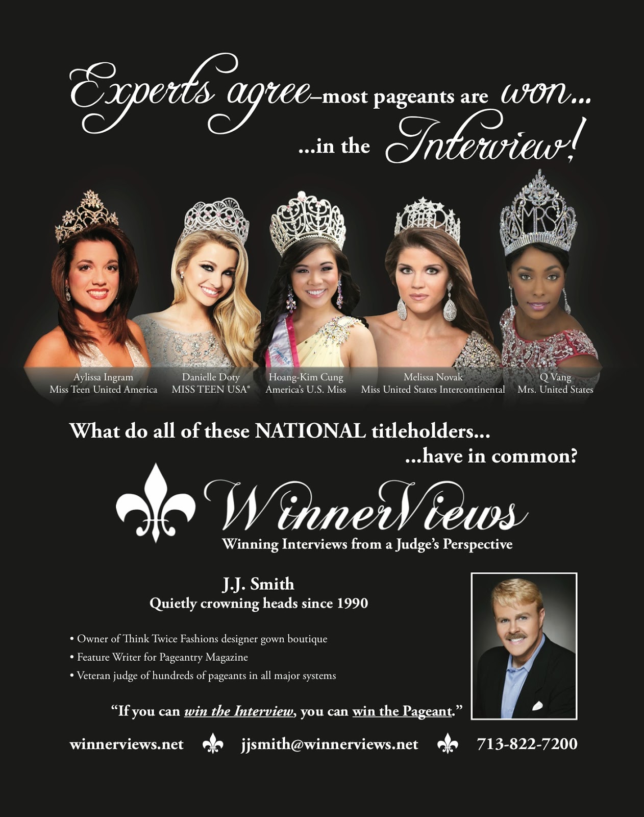 At the beginning of this year, I turned out a magazine ad for JJ Smith and WinnerViews that was featured in many Pageantry Magazines. He was delighted with the results.