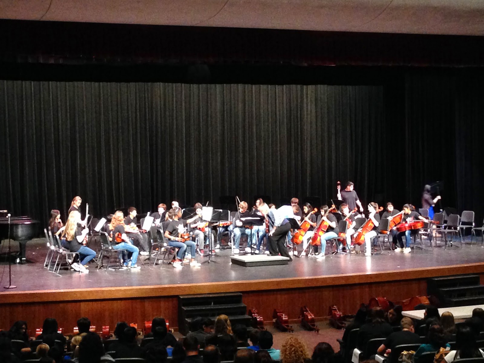All of the Ulrich orchestra’s on the stage to perform together at one time. There are a lot of students in the orchestra program and it gets larger every year.