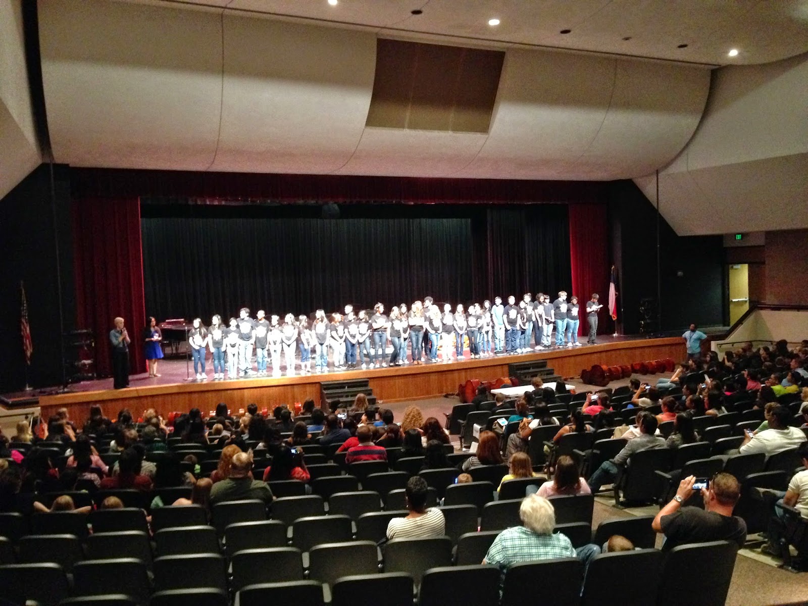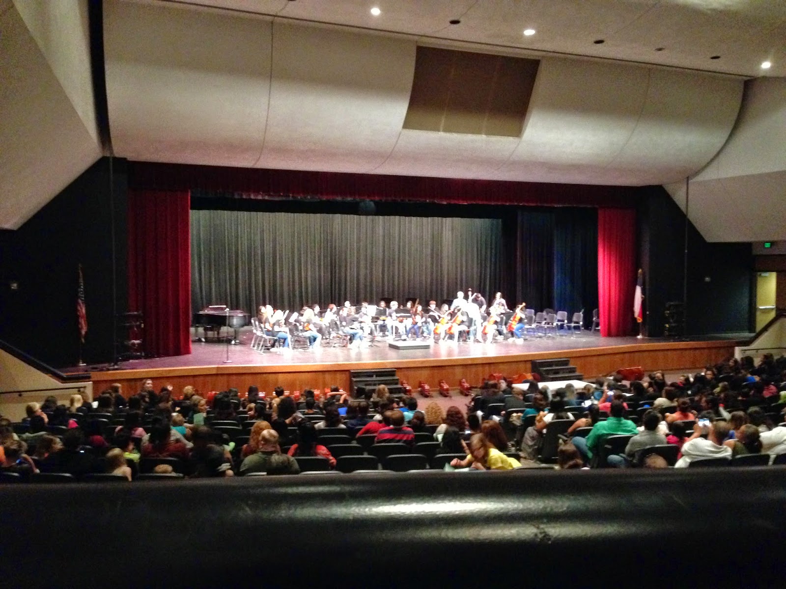 It was held at Klein Oak High School in the auditorium. This was a first for an Ulrich concert. Usually they are in the cafeteria at the junior high. They have done them at The Centrum at the Cypress Creek Community Center as well. They were supposed to do this at Klein High School but their auditorium was torn up due to renovations that are occurring on campus currently. I am okay with doing it at Klein Oak High School in the auditorium as I know the students will all fit on the stage and there is at least decent seating for the parents. I would not jump straight to comfortable seating but it is not uncomfortable. The seats are at least padded. The acoustics in the auditorium are much nicer than in the cafeteria at Ulrich as well.